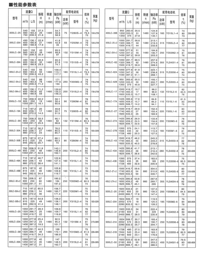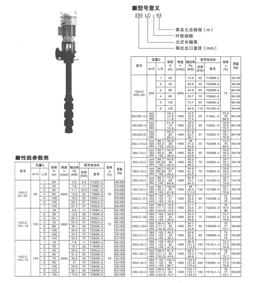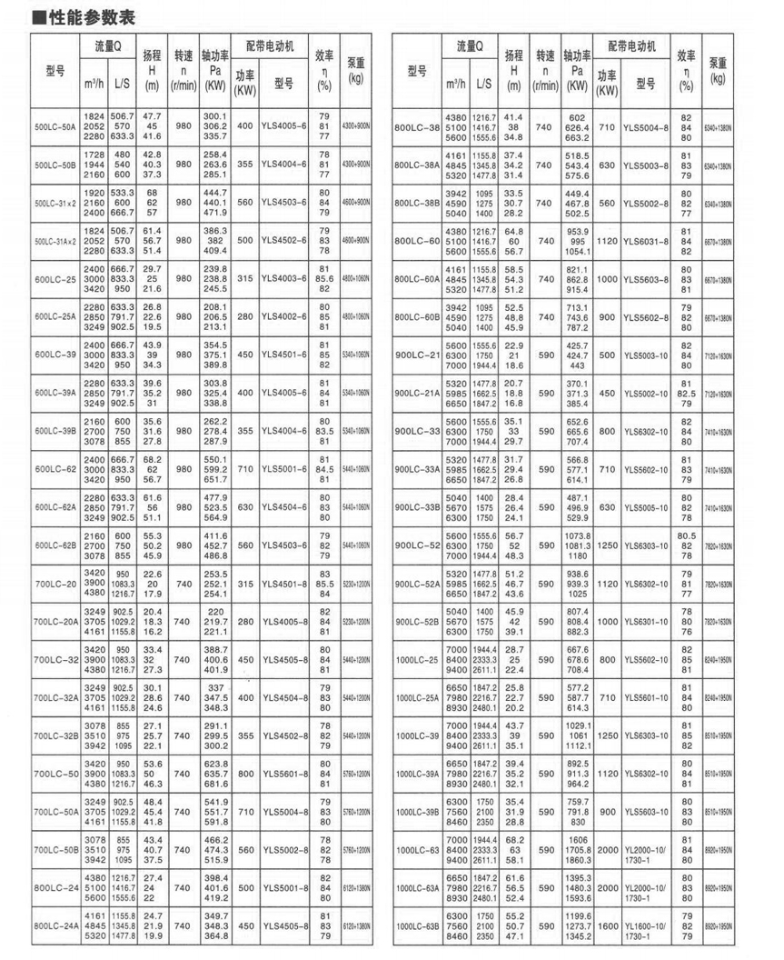 | LC型系列(lie)立式長軸泵,采用(yong)浸沒式葉輪.立式(shi)安裝,具有結構緊(jǐn)湊⭐,工作平穩,操作(zuò)簡便,通用化程度(dù)高等優點。 主要用(yong)途 •用于輸送清水(shuǐ)、污水、具有腐蝕性(xìng)工業廢水或相似(si)的液體。 •工農業給(gei)水及城市工廠污(wū)🐆水的排放。性能範(fan)圍🌐 •轉速:590r/min一2950r/min •出口直(zhí)徑:100-1000mm •流量:30-9400m'/h •揚程:9.7-80.4m •功率(lǜ):4-2000kw |