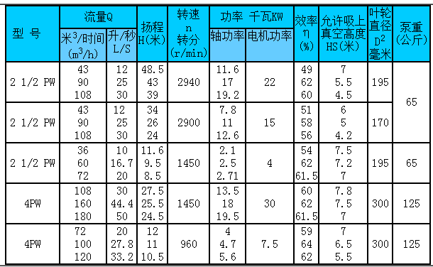 PW型(xíng)污水泵是卧式(shi)單級懸臂式離(lí)心泵。适于抽送(sòng)80℃ 以下帶㊙️有纖維(wéi)或其它懸浮物(wu)的液體,供城市(shi)、工礦企業排除(chú)污水、 糞便之用(yòng)。 21/2PW 21/2一泵吐出口口(kou)徑為2'/2寸,即65毫米(mǐ)P-雜質泵 W-污水 2PNL 2-吐(tu)出口徑被25除所(suo)得值P-雜質泵 N-泥(ní)漿 L-立式 PW型污🈲水(shuǐ)泵是卧式單級(ji)懸臂式離心泵(beng)。适于抽送80℃ 以下(xia)帶有纖維或其(qí)它懸浮物的液(yè)體,供城市、工♻️礦(kuàng)企業排除污水(shui)、 糞便之用。 21/2PW 21/2一泵(beng)吐出口口徑為(wei)2'/2寸,即65毫米 P-雜🧑🏾🤝🧑🏼質(zhì)泵 W-污水 2PNL 2-吐出口(kǒu)徑被25除所得值(zhi)P-雜質泵❌ N-泥漿 L-立(lì)式